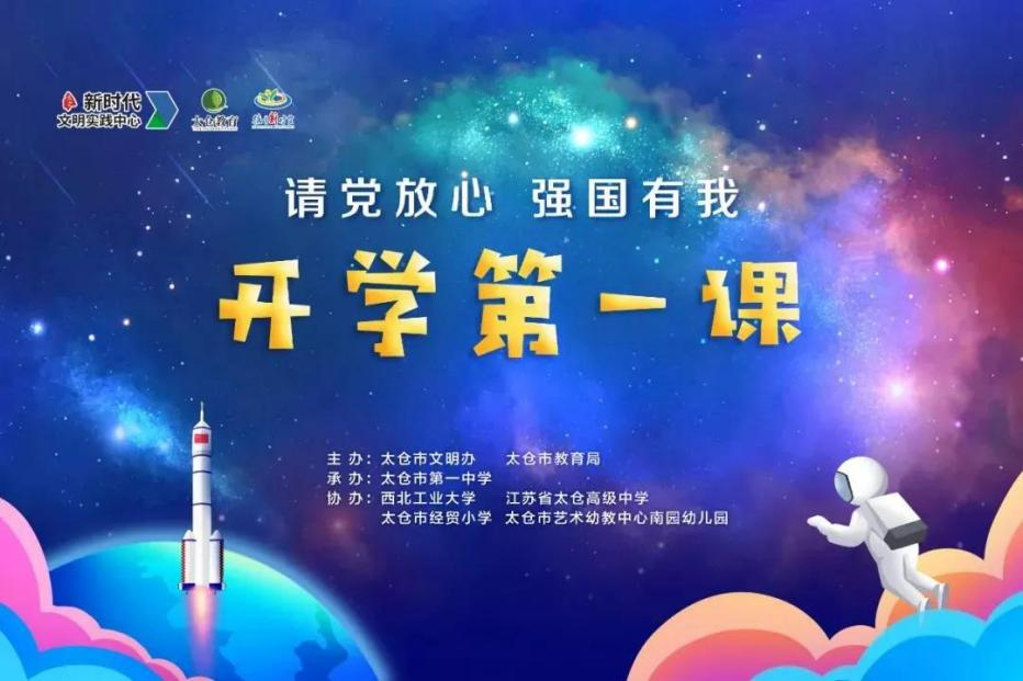 2021年8月28日,由太仓市文明办和教育局主办,西北工业大学、江苏省太仓高级中学、太仓市经贸小学、太仓市艺术幼教中心南园幼儿园协办,太仓市第一中学承办的《“请党放心 强国有我”—太仓2021开学第一课》录制完成。