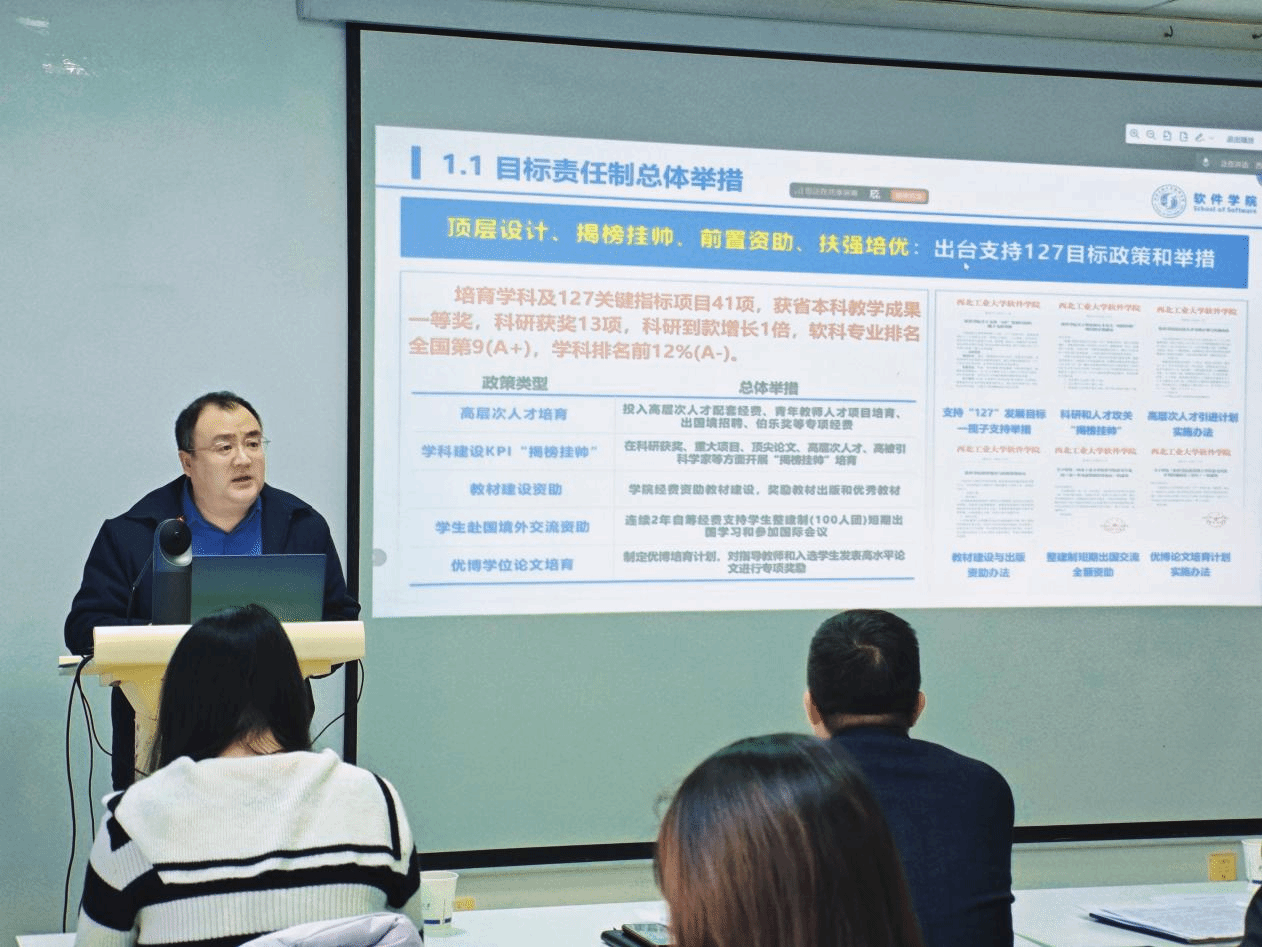 会议开展海外优青工作动员部署,郑江滨传达学校关于海外优青引才工作的政策要求与任务安排。他指出,2025年学院人才工作取得突破性进展,海优引进是下一阶段人才工作的重中之重,全院教师要协同发力,人人争做引才大使,推动学院人才工作再上新台阶。