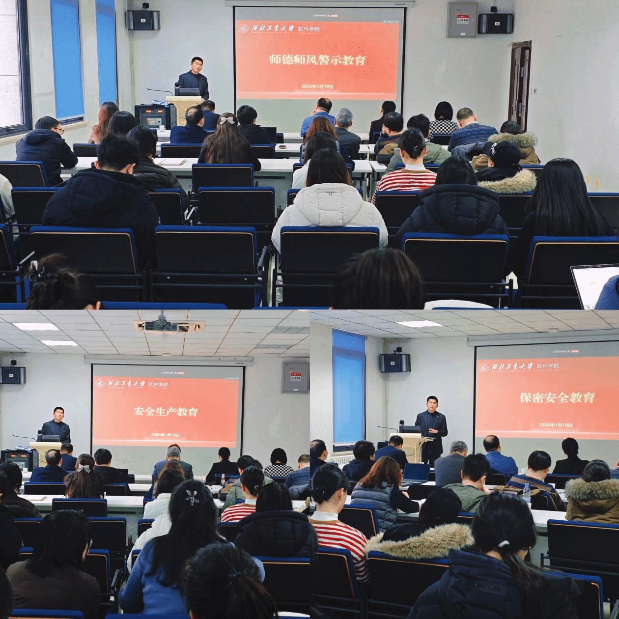 会议开展了师德师风警示教育、安全保密及安全生产专题学习。在师德师风警示教育环节,李晗带领全体教职工学习了师德师风建设相关文件精神,结合典型案例展开深入剖析,引导教职工从案例中汲取教训、对照反思,进一步规范从教行为,自觉以教育家精神涵养高尚师德、锤炼优良师风。在保密安全教育中,李晗传达了学校相关会议精神,并结合实际案例,明确保密工作不仅是涉密人员要重视,非密人员同样要时刻警醒、守牢底线。相关检查标准将会愈加严格,大家不仅要做好日常保密管理,还要加强工作文件管理,切实筑牢学院安全保密的坚固防线。此外,会议还组织了安全生产教育专题学习,进一步强化了全员安全责任意识。