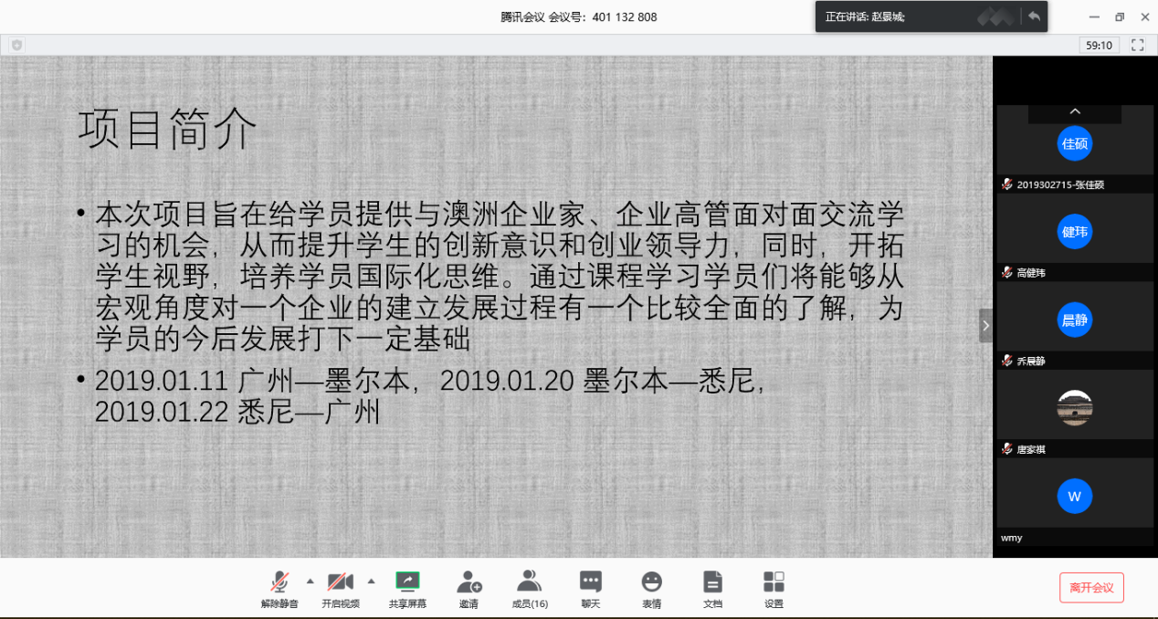 于腾讯会议系统成功举办2020墨尔本大学、麦吉尔大学寒假项目分享会。本次分享会由此次寒假项目带队老师、澳门金沙赌场