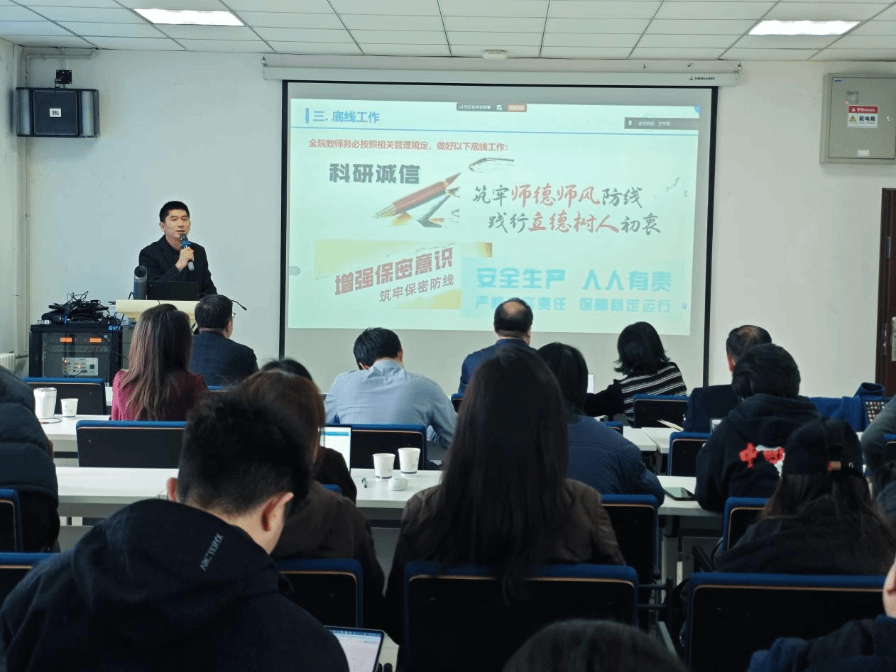 会议还组织开展了师德师风、安全生产与科研保密学习,引导全体教职工自觉践行教育家精神,坚守育人初心,恪守职业规范,筑牢思想与行为底线。