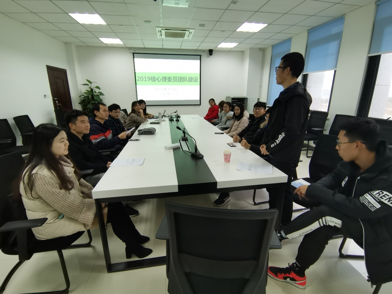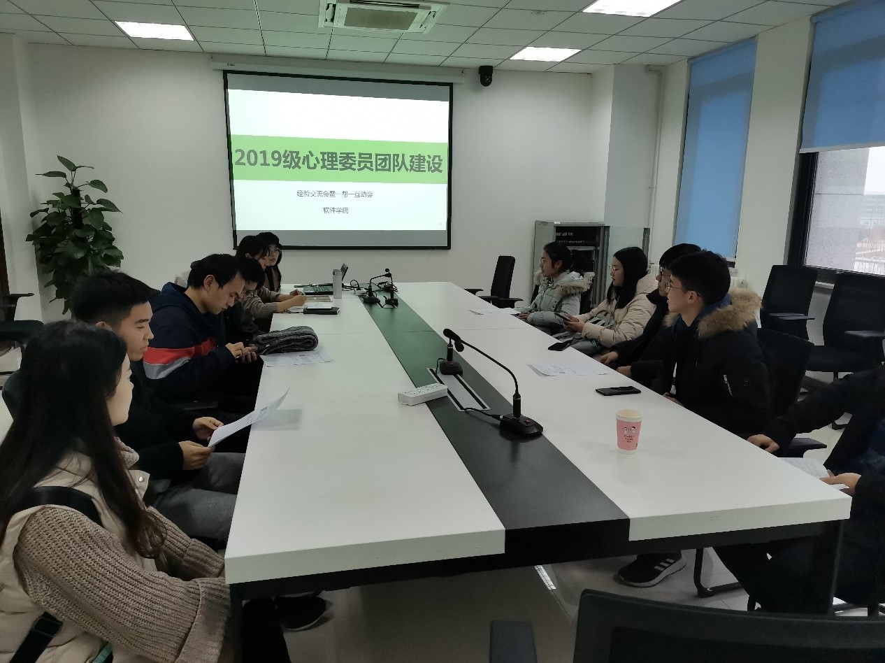 于2019年12月17日下午16:00在启翔楼303会议室成功召开了19级心理委员经验交流会暨一帮一互助会。参加本次会议的有19级本科生辅导员李祖鑫,研究生辅导员张桐,全体19级本科生及研究生心理委员。