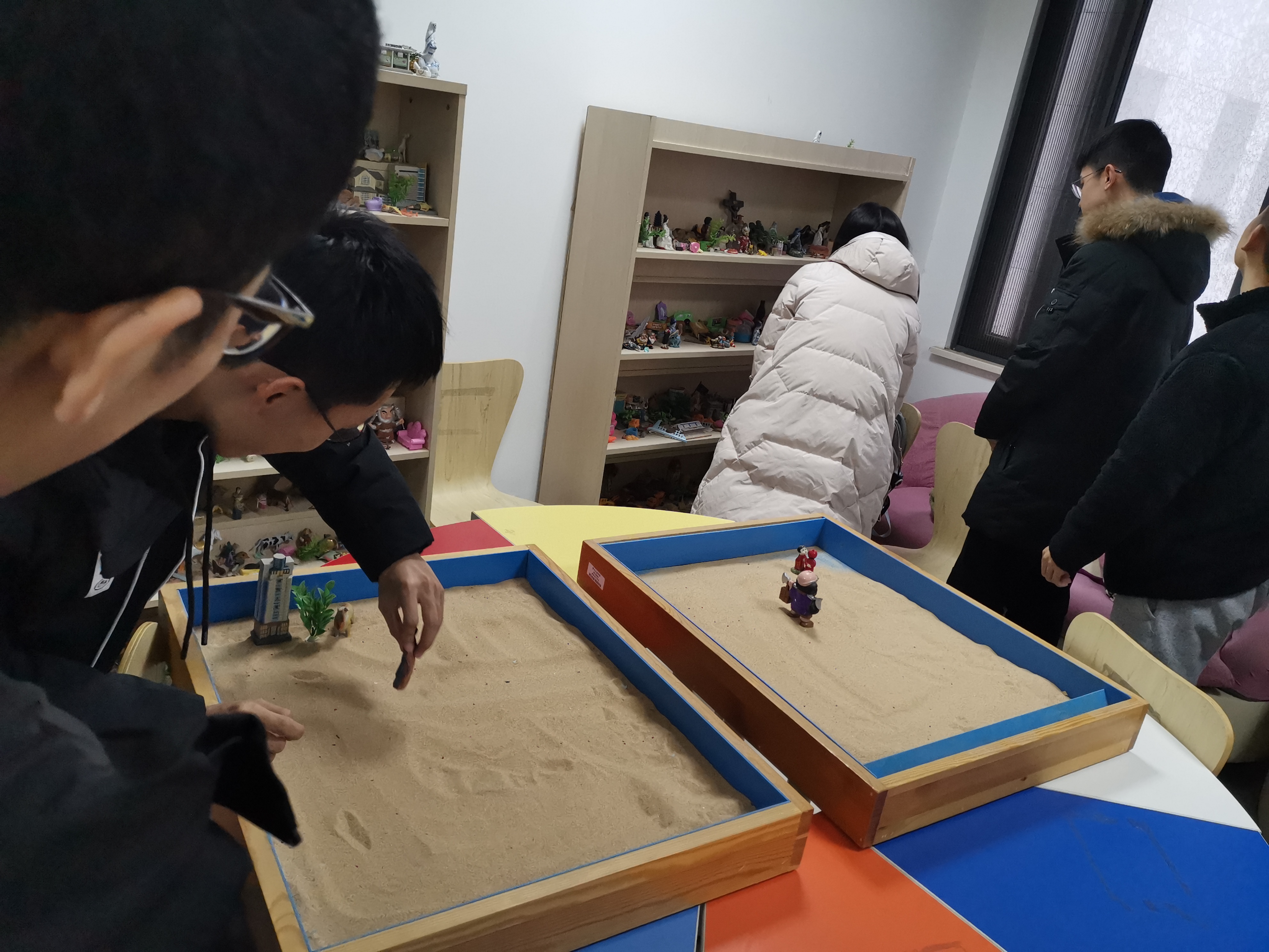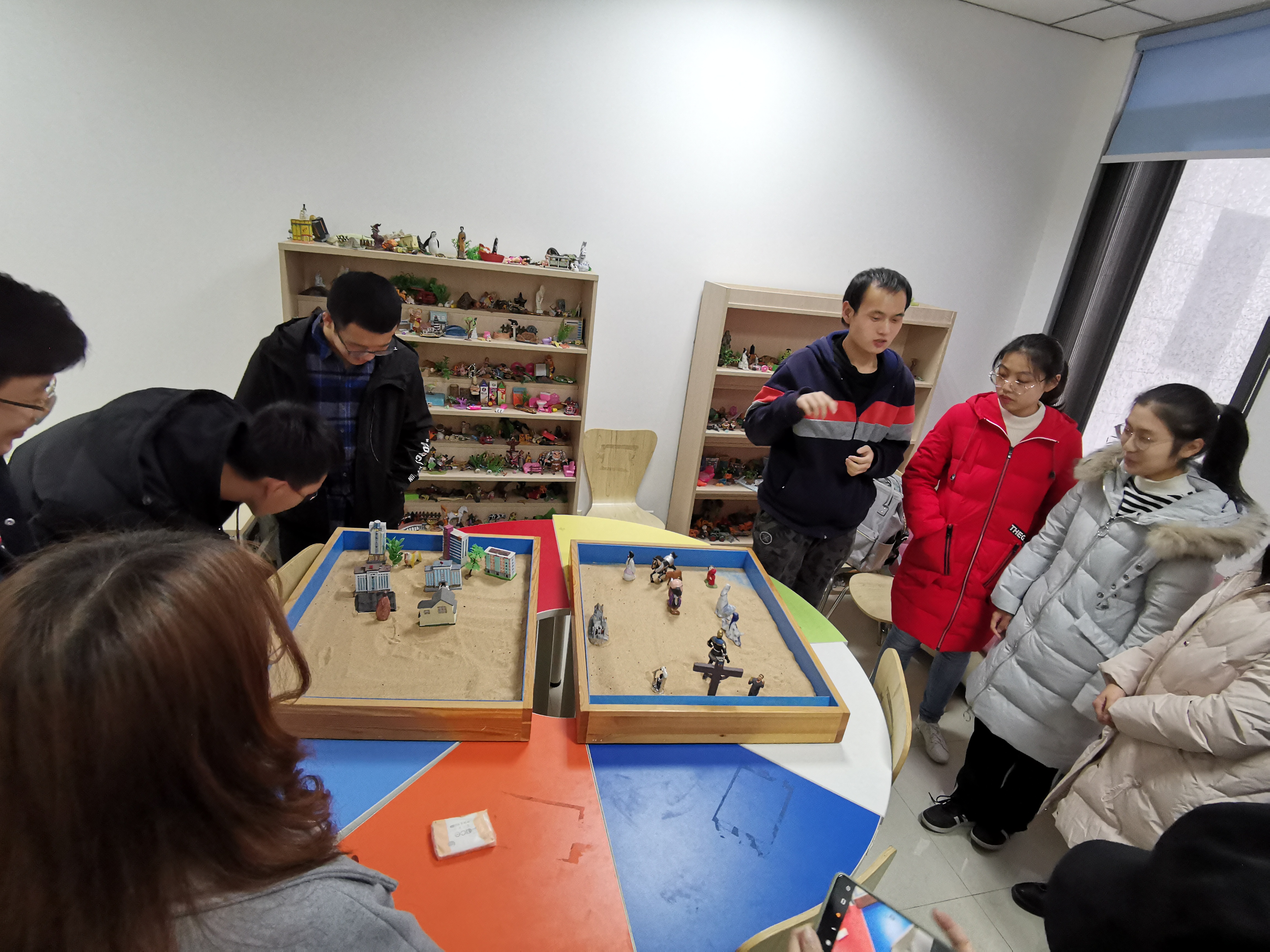 在长安校区启翔楼218心理咨询室举行了2019级心理委员团体辅导沙盘体验活动,澳门金沙赌场
