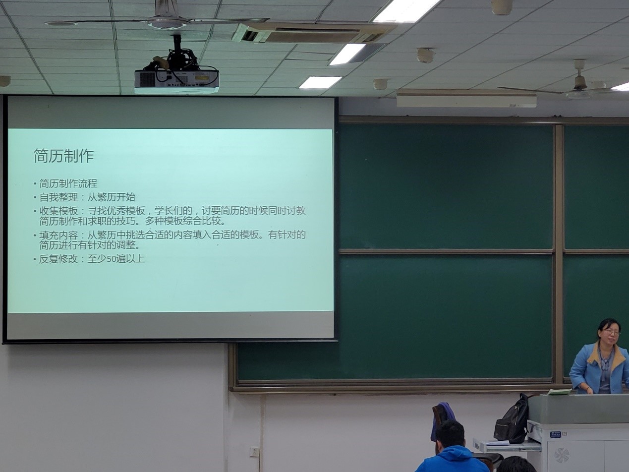 无论考研还是直接就业都需要一份优秀的简历为优秀的你加分,张琨老师向同学们讲解了简历的制作过程。制作简历的过程也是对自己大学生活的一次梳理和审视,可以帮助同学们更好的分析自身的优势,做出更完美的职业规划。张琨老师展示了几份优秀的简历,优秀的学生不仅做的好更要把自己做的展示出来,学会展示自己,才能让招聘的人发现你的亮点,对你印象深刻。