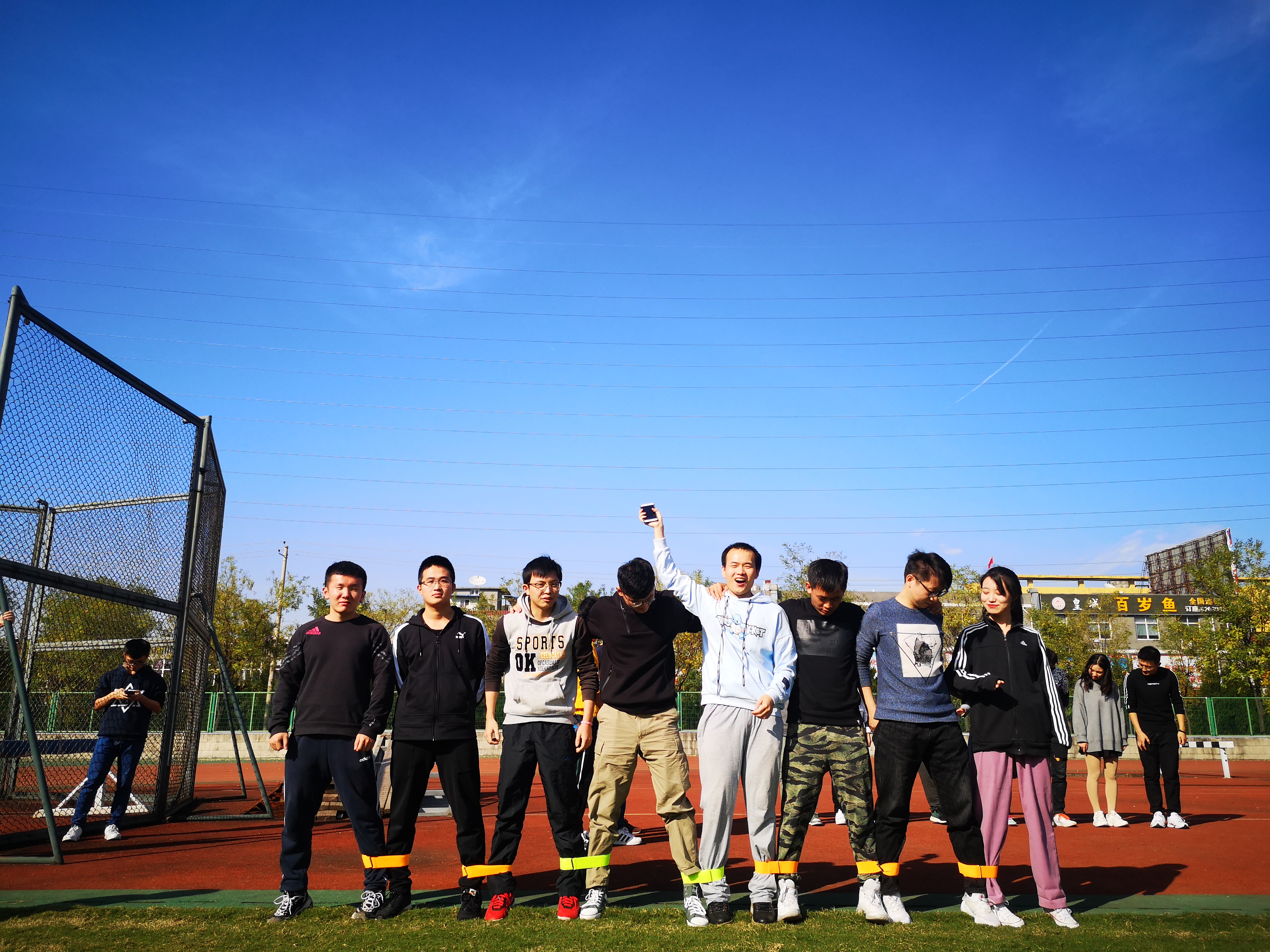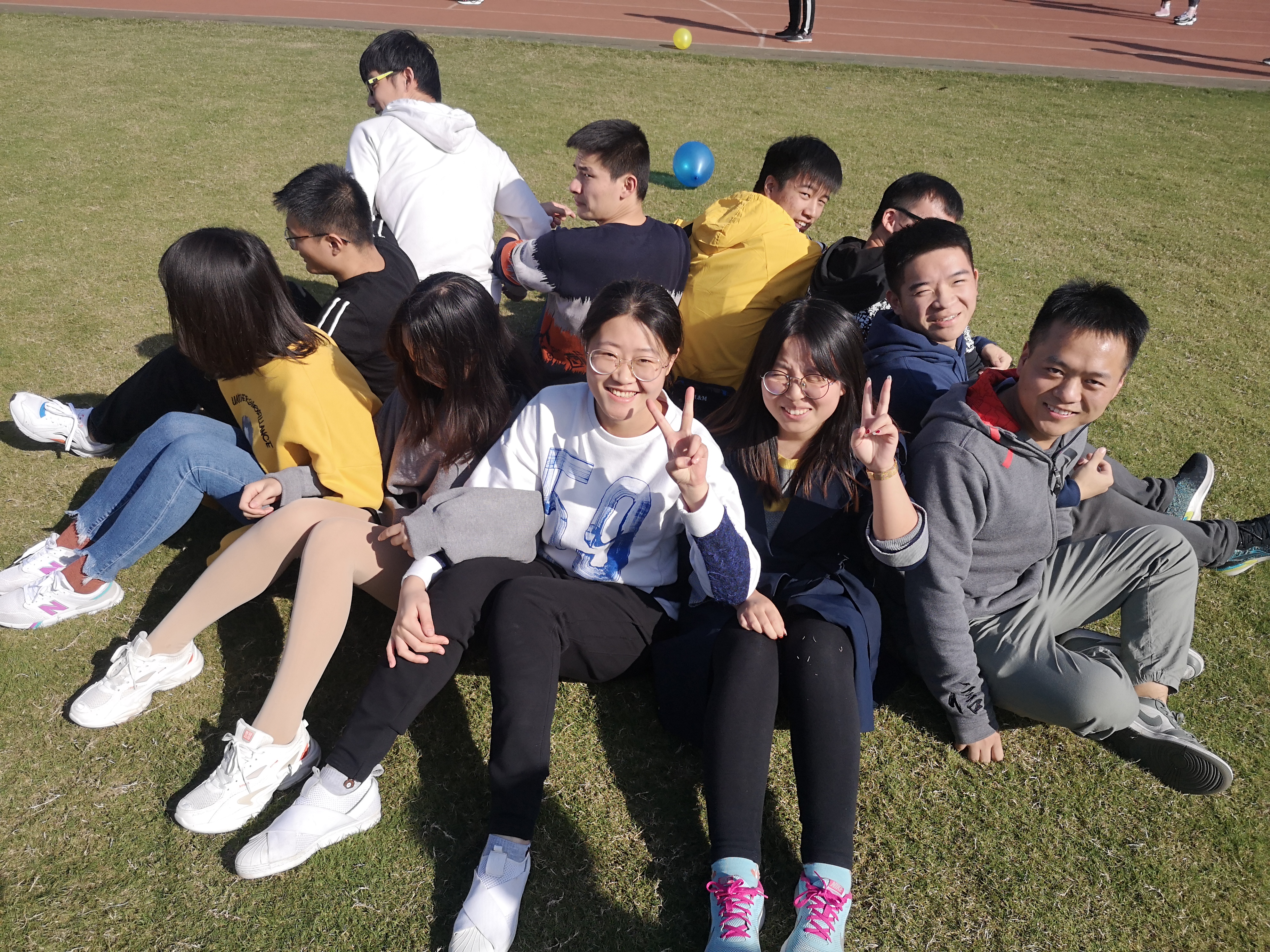 运动会上率先进行的项目叫“心心相印夹气球”,比拼的是各组成员之间的默契程度和协作能力;在云天苑操场上,大家蓄势待发,热情洋溢,完全没了来时的陌生感,晚秋的丝丝凉意也被大家的热情冲淡了。