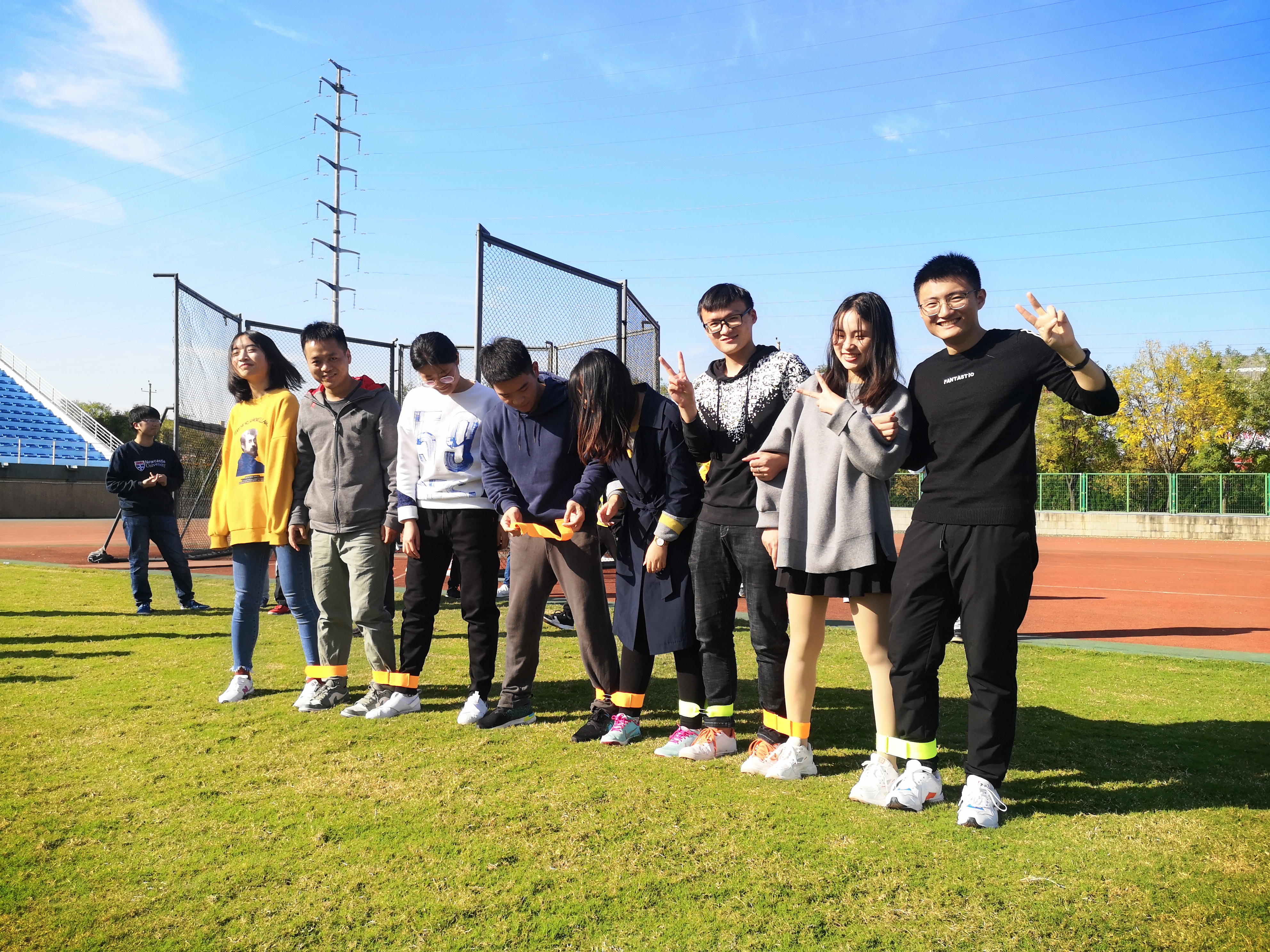 接下来是绑腿跑。随着每个小组的步伐由凌乱到一致,最后每组成员们手挽着手冲破终点,让在场的每一个人都深切感受到了团队协作的意义和价值。这个活动培养了大家的默契,发掘了大家的团队精神,使其更深一层的体会到团结就是力量,亲身感觉阳光般的温暖。