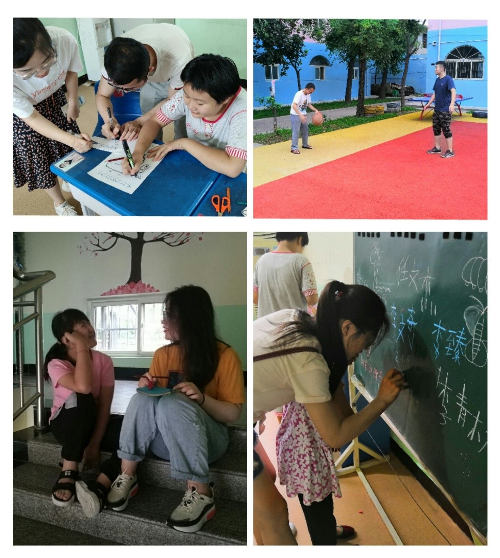 除了开展的四个主题活动外,实践队员们还根据孩子们的需求,教孩子们做游戏,和孩子们聊天,教孩子们打篮球等,这大大增进了实践队员们和孩子们的感情。同时,除了和孩子们互动外,实践队员们还和中心的老师及其他工勤服务人员进行交流,这大大提到了我们深入社会的能力。在社会实践期间,实践队员们还专门买了孩子们喜欢的水果和零食,以便陪伴孩子们更好地玩耍,给他们带来更多的欢乐。在实践活动的最后,在孩子们和各个哥哥姐姐的相互协作下,孩子们将他们的名字和实践队员的名字都写在黑板上,一个个稚嫩的字充分显现出了孩子们和哥哥姐姐们的深厚情感。