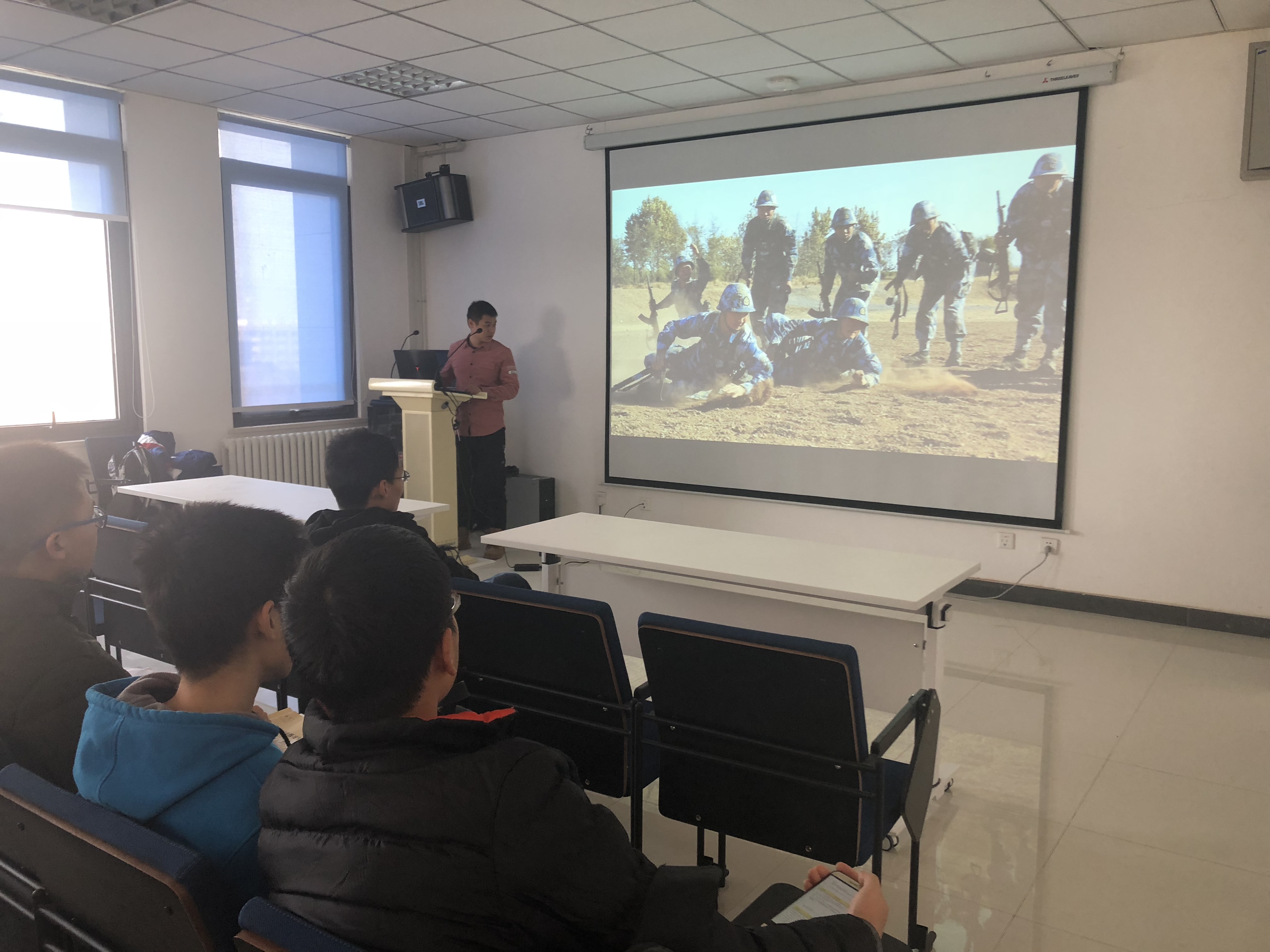 “豆腐块”被子、武装越野、战术、战伤救护、队列……一项项新兵训练照片展示在大家眼前,每一张都透露着新兵永不放弃的执着、呈现着由时间堆积的成熟,都深深吸引着在座的每一位同学。宣讲最后,范峻川同学为大家解读了当代大学生应征入伍的政策,并表示两年的部队生活转眼即逝,在这两年里,从一开始的懵懂到深刻体会到了什么才是国防精神,同时,更是收获了浓浓的战友情!会后,同学们积极踊跃的询问关于入伍的政策及部队的生活,氛围十分活跃。