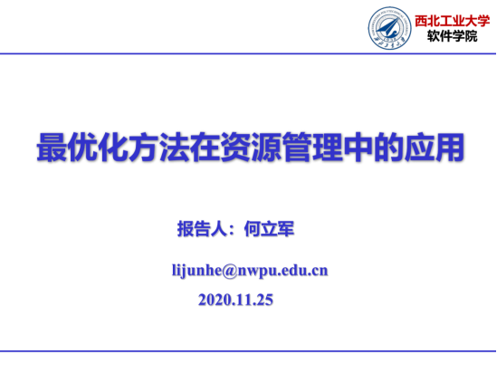 太仓研究生党支部承办的仓秦学术讲座第八期活动在太仓三角研究院和腾讯课堂同时与各位同学见面。在本期活动中,青年教师何立军老师为广大的同学们带来了《最优化算法在资源管理中的应用》专题讲座。