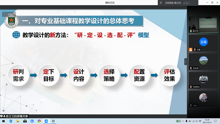 教学研究与教师发展分中心举办了题为“融入新理念,体现新需求,创新专业基础课程教学设计”的主题报告会,由陆军工程大学指挥控制工程学院陈卫卫教授为学院青年教师带来精彩的报告,报告会由学院副院长马春燕主持,太仓校区教师通过腾讯会议线上参会。
