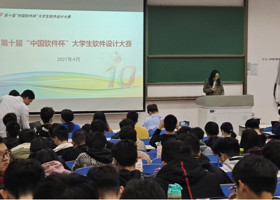 首先,“中国软件杯”大赛组委会代表安苾寒对从主办机构、赛事目标、赛事宗旨、赛事历史等方面对赛事状况做了简单的讲解,向同学们介绍了比赛的流程,使同学们对该比赛形成了一定的初步认识。另外,安苾寒还对大赛的亮点进行了详细的分析,让同学们深深感受到该赛事的价值以及参赛的意义,从而激发了同学们的参赛热情。