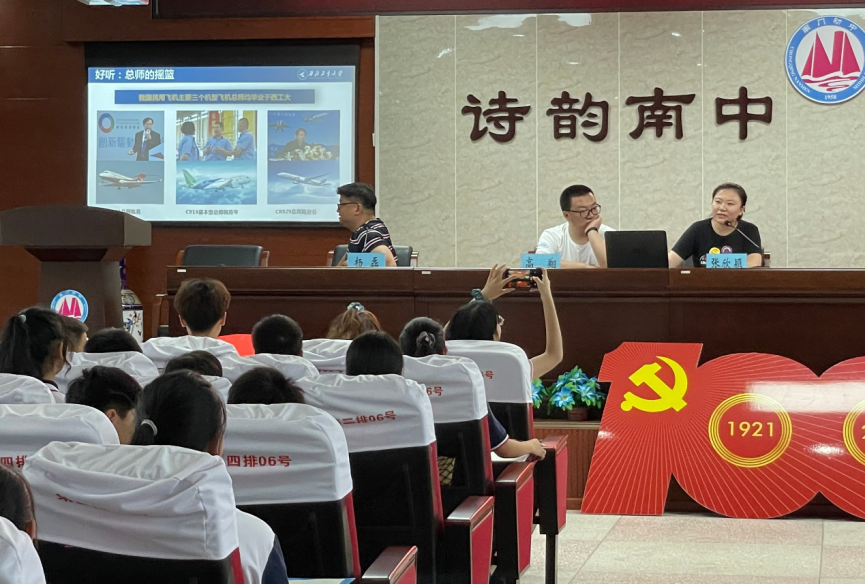 (张欣颖老师向南开初中的同学们介绍西北工业大学)