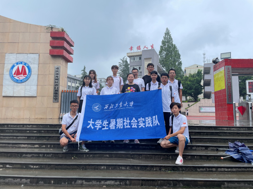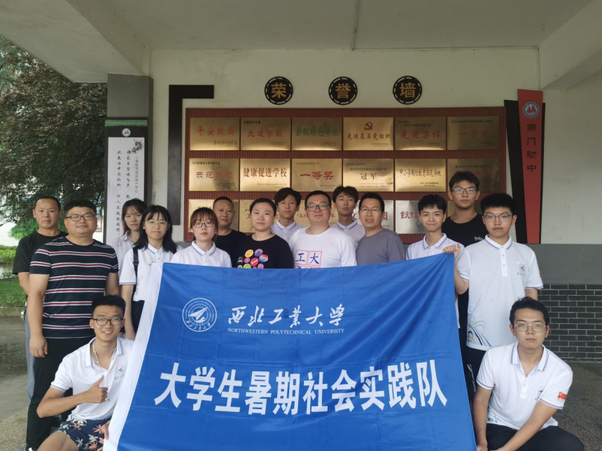 实践队所前往的南门初中创办于1958年,有比较悠久的办学历史和一定的文化底蕴。目前校舍占地30余亩,校园布局合理,层次井然,错落有致,相得益彰;校舍焕然一新,环境幽雅,书香浓郁,诗韵弥漫。先后获得开州区文明礼仪示范学校、健康促进校园、先进党支部、扶贫工作先进集体、食品安全示范单位、卫生示范学校、足球特色学校、学生实验竞赛一等奖、安全考核一等奖、教学质量一等奖、诗词大赛初中组冠军,重庆市依法治校示范校、重庆市最美校园书屋、重庆市诗教名校、重庆市平安校园,国家级“中小学国防教育示范学校”等一系列荣誉称号。