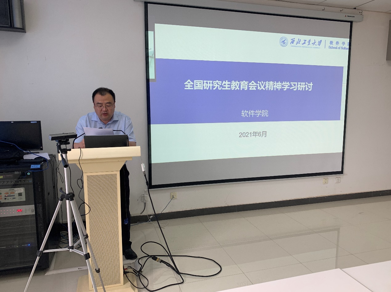研究生导师培训大会,院长郑江滨带领全体研究生导师学习了《西北工业大学研究生导师岗位管理办法》、《西北工业大学研究生导师指导行为准则》、《西北工业大学研究生导师培训管理办法》、《西北工业大学研究生教育优秀导师评选办法》。