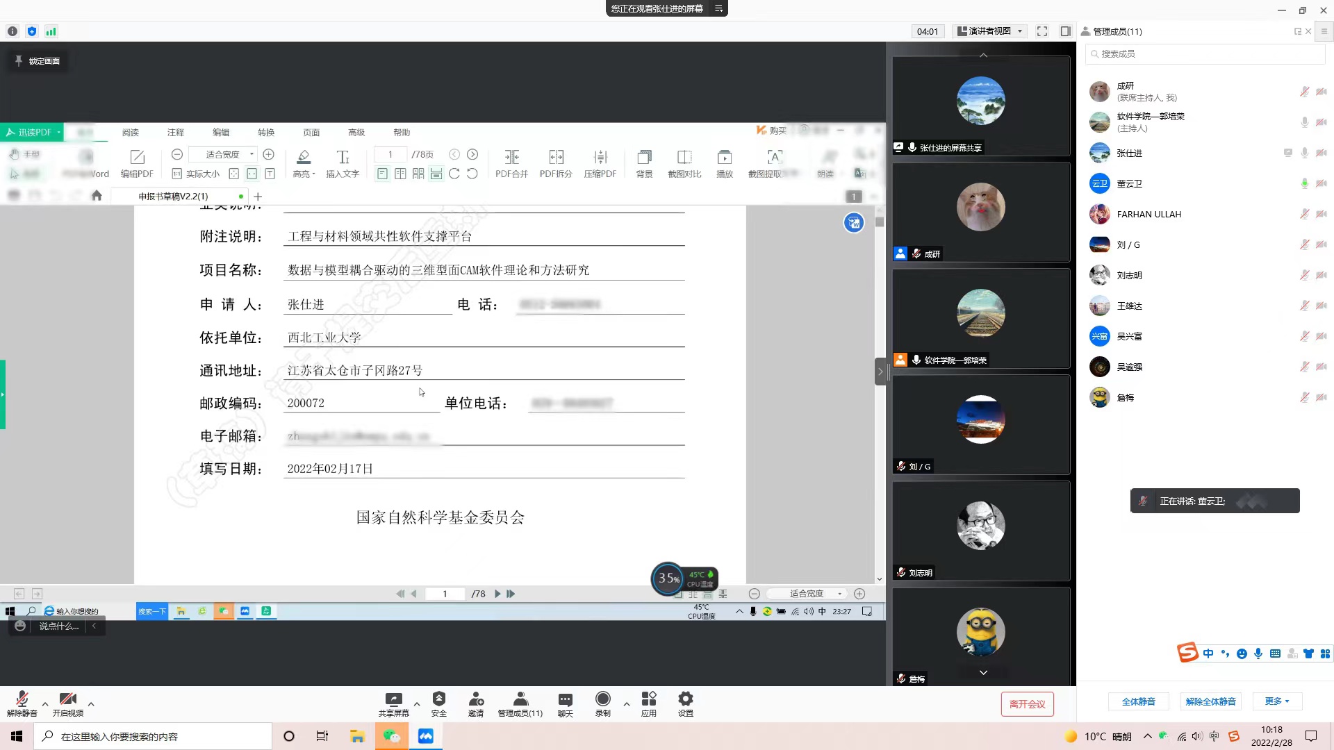 刘志明教授作为评审专家,对学院教师拟申报的2022年度国家自然科学基金重点项目和外青项目进行了线上评审辅导,评审会由副院长郭培荣主持。