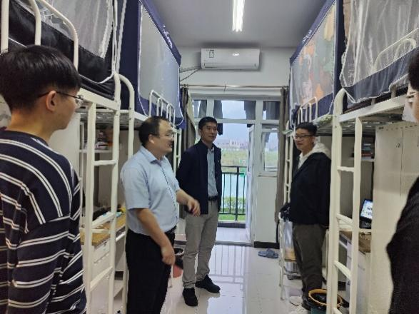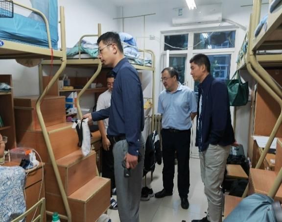 院长郑江滨,党委副书记(主持工作)李晗、副书记张龙,2022级研究生学生工作助理王菲,本科生新生学生工作助理罗兴行一同走访新生宿舍,了解学生的住宿情况,思想动态及排查安全隐患,通过与新生亲切交谈,帮助他们更好的融入校园生活,向他们传达学院的问候与关怀。