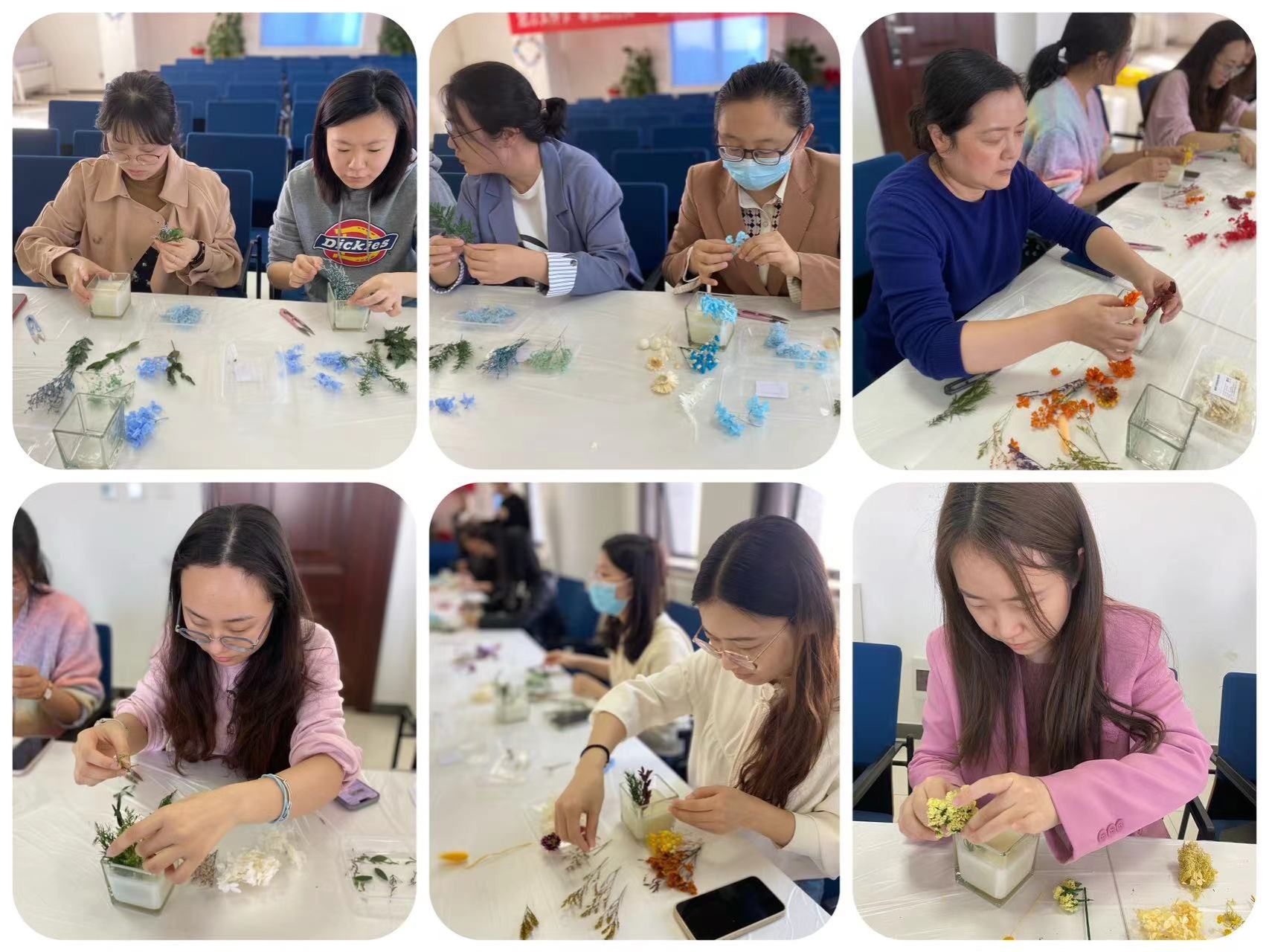 平日里繁忙的女教职工们难得有机会放下手头的工作,全身心地投入到插花活动中。大家在插花中寻找乐趣,从作品中获得满足,在交流中拉近距离,美丽的干花香薰更传递了美好和祝福。 小小插花活动,不仅体现了学院关心女性教师自我成长的每一个细节,更进一步提升了女性教师的文化艺术修养,增强了幸福感与审美能力,激励她们在教育教学工作上坚守本职岗位,更好展示新时代女性的精神风貌,以“半边天”的女性力量,坚定支持学院和学校工作。真诚祝愿每一位女教职工身体健康,永远如花儿一样美丽!