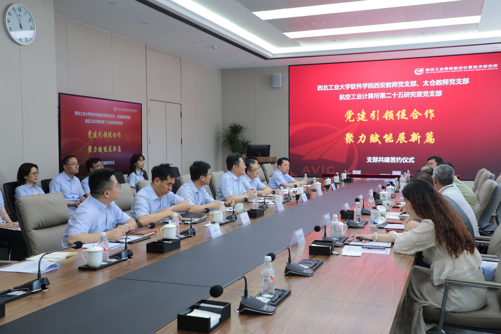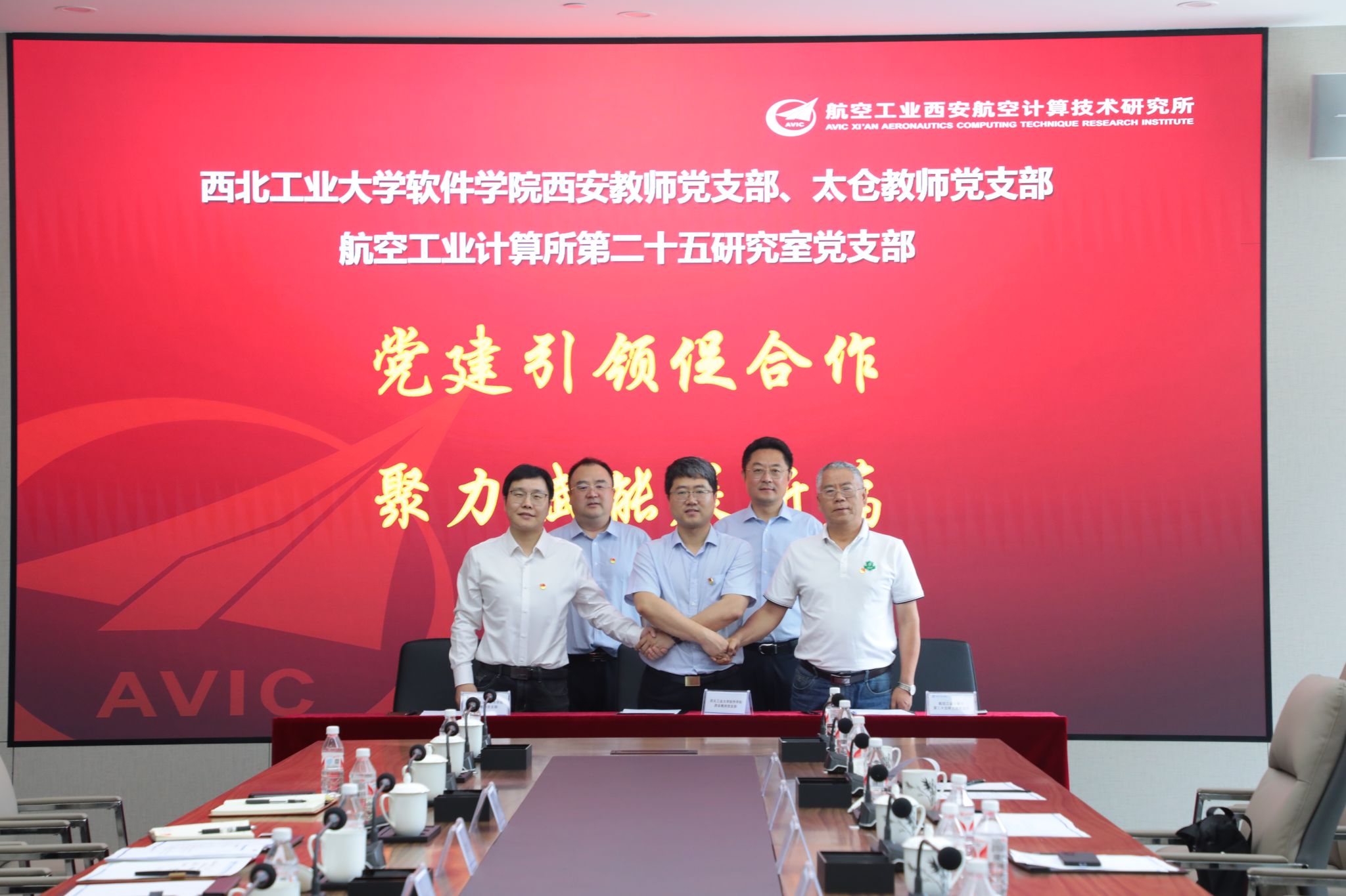 教师党支部、太仓教师党支部代表前往西安航空计算技术研究所(631所)开展支部共建签约仪式。计算所所长胡林平,科技创新管理部副部长王明波,党建文宣部副部长邓文盛,第二十五研究室党支部副书记、副主任许少尉,澳门金沙赌场