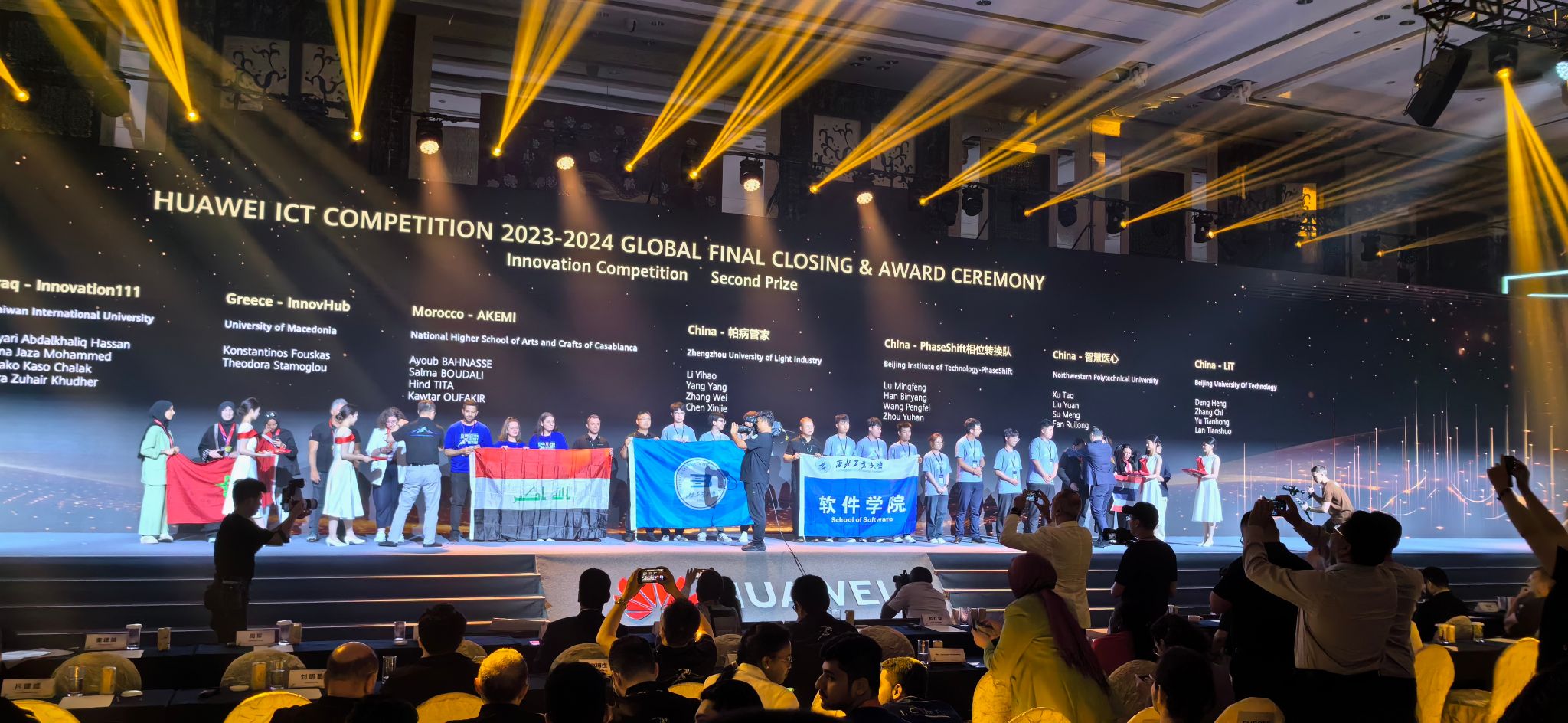 2024年5月26日,华为ICT大赛2023-2024全球总决赛闭幕式暨颁奖典礼在深圳举行。本届大赛为历届最大规模的华为ICT大赛,共吸引了全球80多个国家和地区、2000多所院校、17万余名学生报名参赛,经过国家赛、区域赛层层选拔,最终来自49个国家和地区的161支队伍、476名参赛选手脱颖而出,进入全球总决赛并获得各奖项。