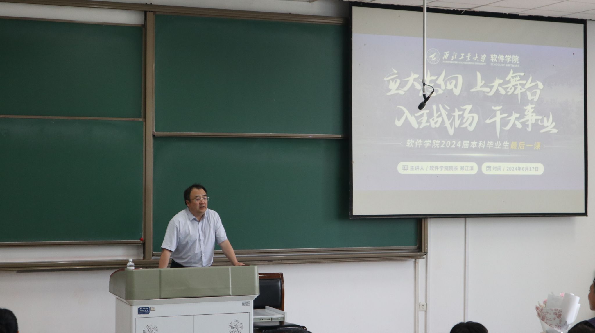 院长郑江滨在教学西楼D座206教室为2024届本科毕业生讲授“最后一课”。本次活动由澳门金沙赌场