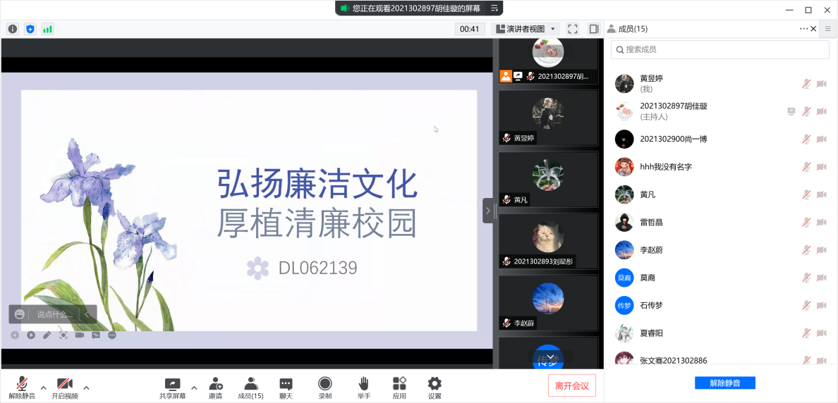 各年级的同学们能够更深刻地体会廉洁文化的相关内容,将清廉的种子埋在了每一位心中,为以后各项工作的开展打下了基础。