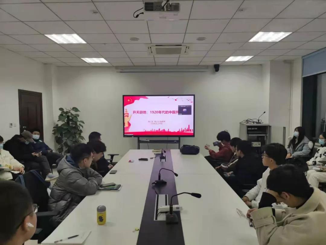 党课伊始,高红波从1920年的社会环境开始讲起,给大家讲述了中国共产党成立的背景以及过程,细致的讲解让同学们如图身临其境般体会到当时中国社会的危难情况。