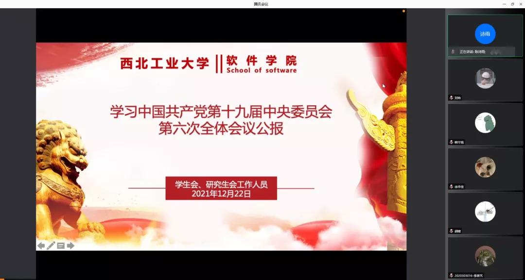学生会召开线上会议,集体学习领会党的十九届六中全会精神。院团委书记张欣颖、研究生会指导老师茹丽媛,全体学生会、研究生会工作人员参加会议,本次会议由研究生会执行主席陈诗雨主持。