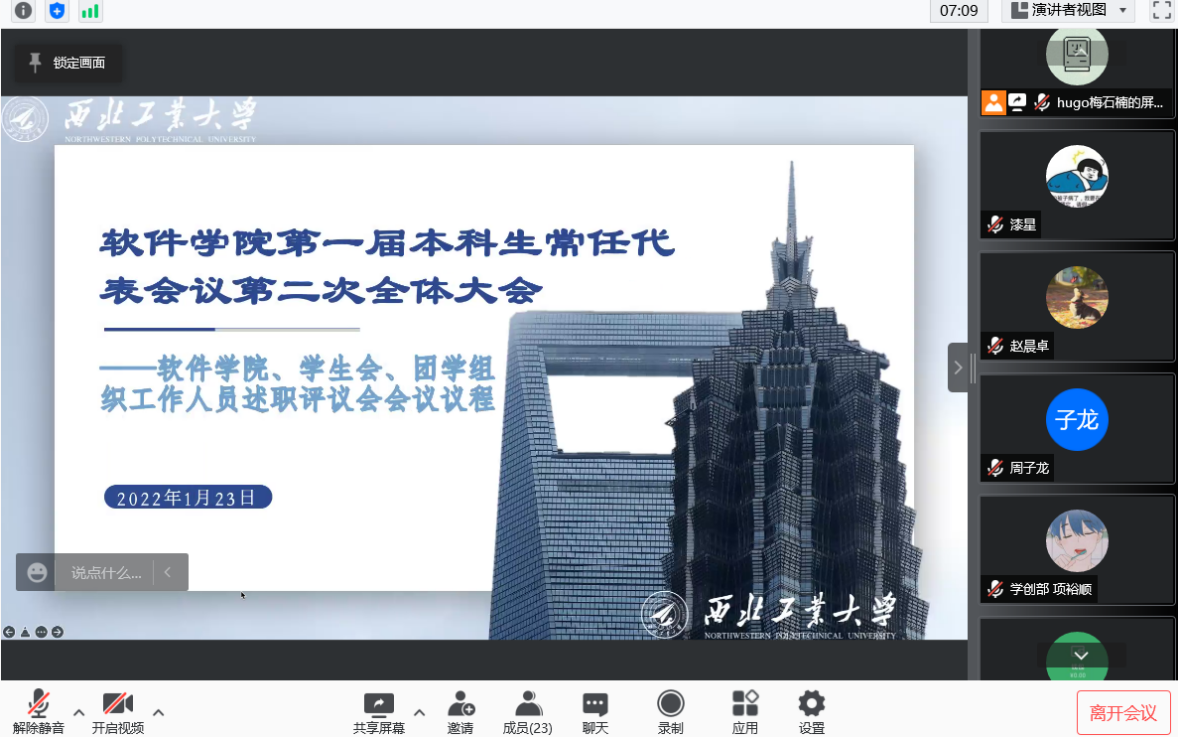 同时,各个部门也对未来工作提出了展望。明确了未来的进步方向,并根据本学期的工作经验,能够在新学期完善工作流程和工作制度,创新工作台账,不断更新学生会常规工作的规范化和程序化,提升学生会的工作效率和工作能力。更好地为同学们服务,继续彰显软件学子奋发向上、永不放弃的青春风采。
