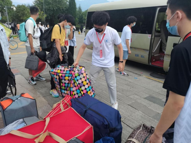 (志愿者帮助新生搬运行李)