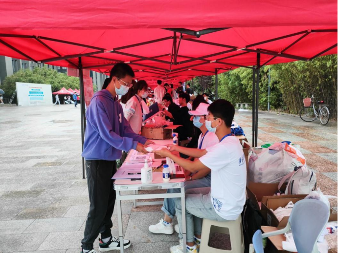(志愿者们在领取一卡通)