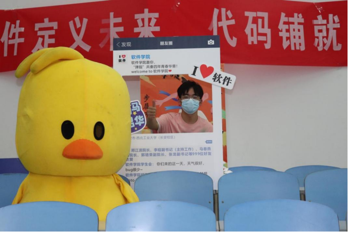 新生集中报到日,学校召集校院两级志愿者组建服务队,81名软件学子参与其中。报道场地分为外场和内场,外场负责“一对一”带领、行李搬运、校园文化宣传等工作。外场志愿者顶着细密的雨点,往返于摆渡车和宿舍之间,途中热心向新生介绍学校布局、分享大学生活经历,一袋袋行李在外场工作队的帮助下相继被送至宿舍楼。内场工作队负责现场报到注册、信息核验、发放迎新礼品等工作。报到现场,新生凭借录取通知书可领取总师签名版3D打印“运-20”飞机模型一架。学院还精心布置了“小黄鸭”留影角,为小鲜肉们留下报到入学的青春记忆和珍贵留念。一张张洋溢喜悦的笑脸、一句句贴心的解答、一份份精美的文创礼品,使新生真切感受到西工大人的热情和贴心。