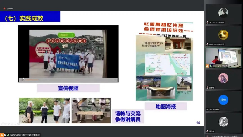 团委召开暑假社会实践分享会,会议以线上线下相结合的形式开展,学院党委副书记张龙,2022级本科生学生工作助理罗兴行及优秀实践队代表、优秀实践个人、新生班干部线下参会,学院团委书记、2022级本科生辅导员张记国,团委副书记、2021级本科生学生工作助理胡雅心及2021级、2022级本科生线上参会,会议由学院实践部部员罗正天主持。