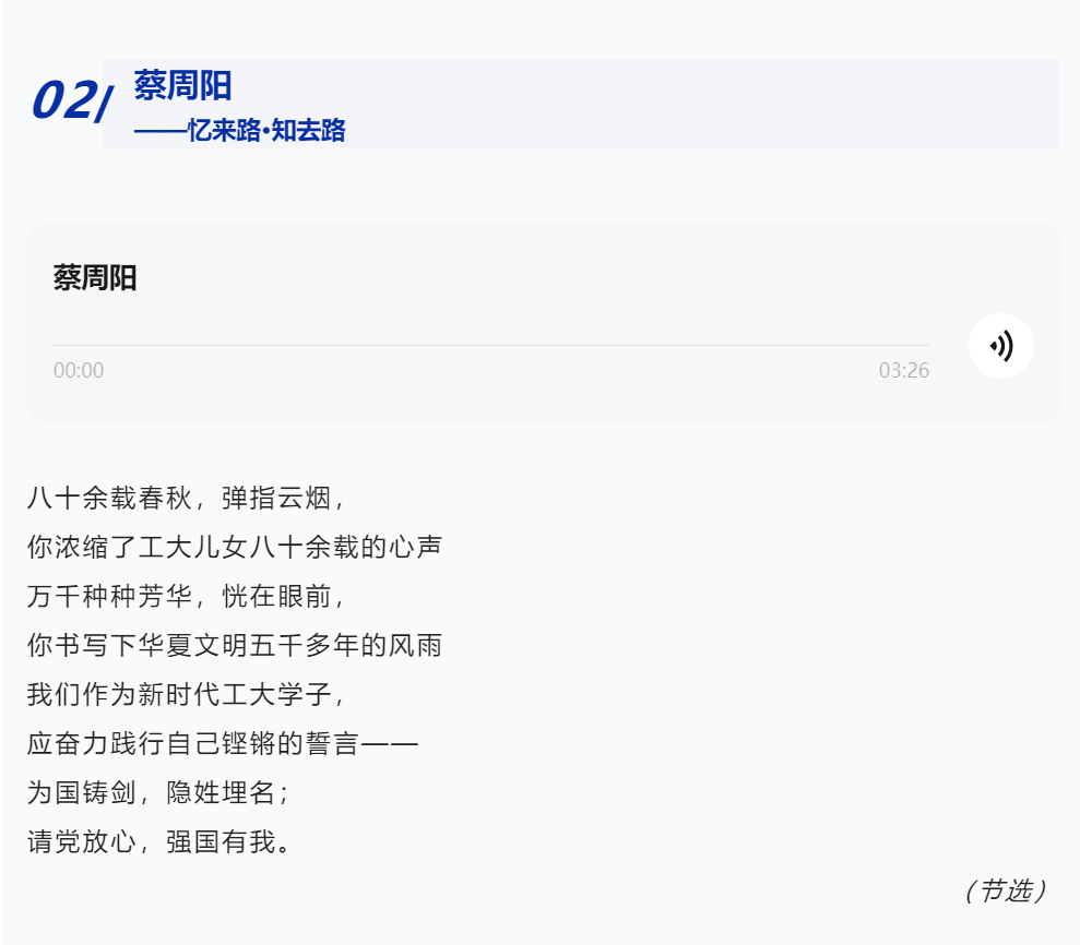 回望西工大历史长河,无数学子作浪花奔腾;漫步公诚勇毅的长廊;前辈故事仍历历在目;高歌青春奋进的旋律,爱国之声常萦绕耳畔……有一种感动叫红色,有一种温度叫朗读。