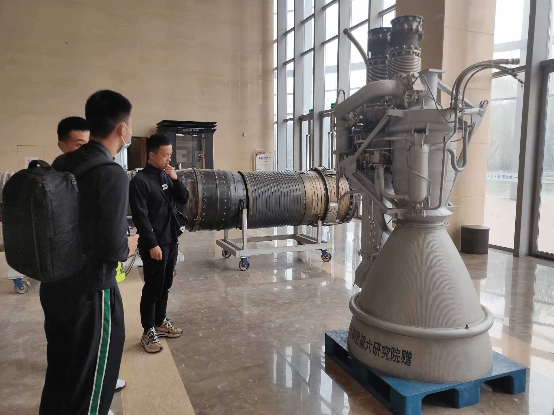 继续向西走,同学们来到了西北工业大学图书馆,参观了第六研究院等单位向西北工业大学赠送的设备与部件,再次感受到了西北工业大学的底蕴。