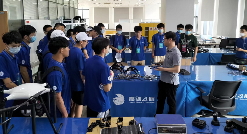 参观完先进核能材料研究中心,同学们又参观了嘉创飞航智能科技有限公司。嘉创飞航智能科技有限公司与西北工业大学开展了多个合作项目,与西北工业大学的关系密切,并且它的创始人也是西北工业大学的校友,所以这里的负责人对待学生的态度非常亲切,并详细地为同学们介绍了公司的主营业务和技术应用。经过负责人的介绍,同学们认识到软件在硬件中发挥的作用,进一步加深了对学科技术交叉融合的重要性认知。