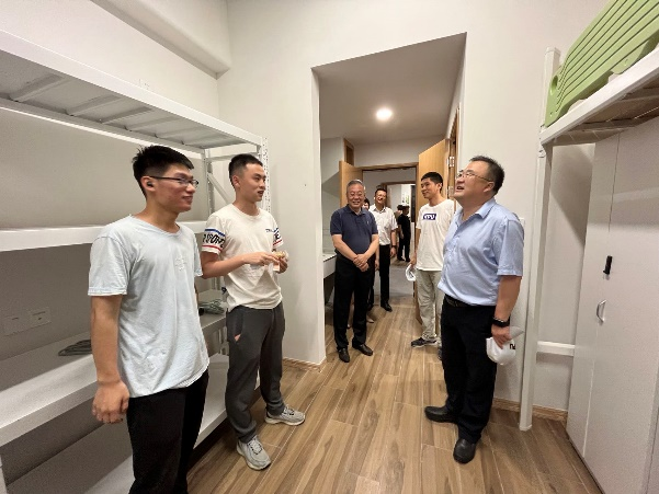 随后,党工委书记万小朋、副书记陈洪亮带领太仓智汇港工作人员到学生宿舍进行了走访和慰问,同时,学院领导和老师们对同学们在未来两周的生活环境进行了查看并指导学生安全使用宿舍的电器设备。
