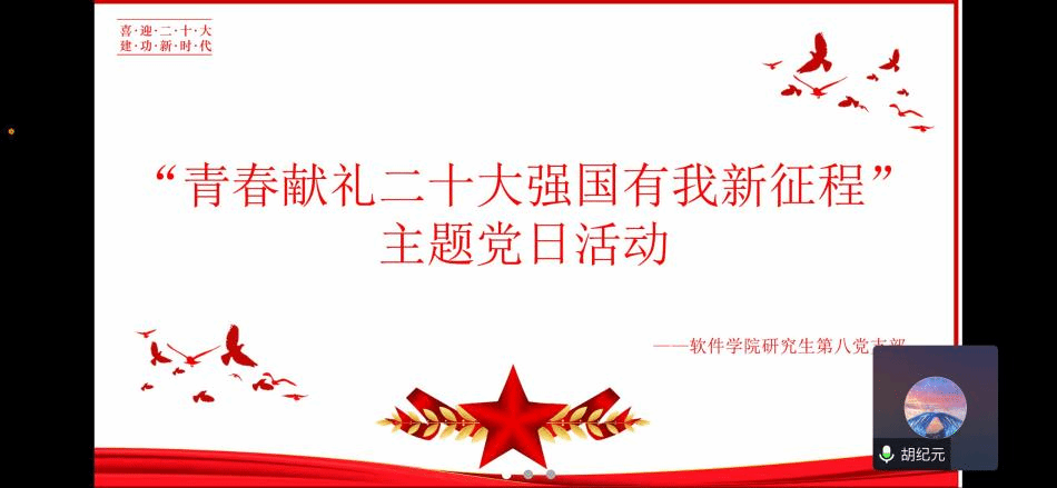 研究生第八党支部紧紧围绕加强党支部建设这一主题,致力于创建学习型党支部。在党的二十大期间,支部于2022年11月9日开展了“青春献礼二十大 强国有我新征程”主题党日活动,集体观看二十大片段视频,强化党员干部的理论武装,筑牢思想根基。在毛泽东等老一辈革命家为雷锋同志题词60周年之际,支部开展“青春践行二十大 雷锋精神代代传”主题党日活动,全体党员合唱红歌,回顾党员誓词,并将启翔楼楼下自行车摆放整齐,积极发挥党员先锋模范作用,以实际行动践行新时代的雷锋精神。